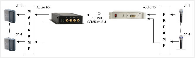| The ELIM EL-4A2202 TX/RX seriesaudio transceiver supportssimultaneous 4 channels of digital audio transmission over a single-mode optical fiber. It is suitable for long haultransmission application without any noise or electromagnetic interference.The modules are universallycompatible with general purposeaudio signal transmission system.Plug-and-play design ensures ease of installation requiring no Electrical or optical adjustments. Each Transceiver incorporatesstatus indicating LED¡¯s for monitoring of proper System operation. |