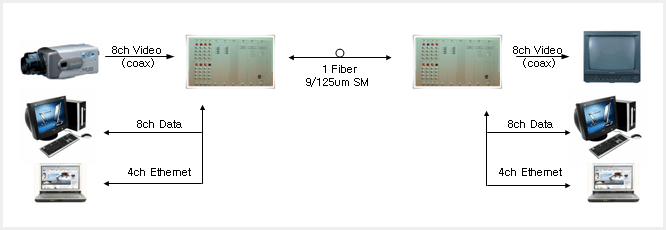 | The ELIM EL-8V8D4E1402 TX/RX series video/data transmitter/receiver supports simultaneous 8 channels of broadcasting quality video transmission of 10-Bit digitally encoded video, 8 channels of data and 4 channels of ethernet transmission over a single-mode optical fiber. It is suitable for long haul transmission application without any noise and electromagnetic interference. The modulesare universally compatible with major CCTV camera manufacturers.Plug-and-play design ensures ease of installation without any electrical or optical adjustments. Each transceiver incorporatesnumeric or LED level displays for monitoring of proper system Operation. It displays video signal levels and optical network status. |
